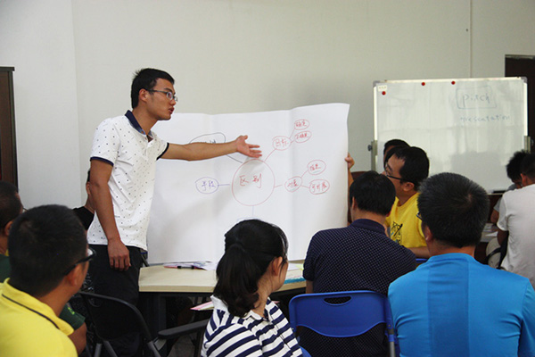 體驗(yàn)課由中國地質(zhì)大學(xué)博士、子謙國際創(chuàng)業(yè)教育學(xué)院首席專家、河北地質(zhì)大學(xué)創(chuàng)新創(chuàng)業(yè)教育學(xué)院執(zhí)行院長與教學(xué)總監(jiān)朱燕空作為主講。體驗(yàn)課以新常態(tài)下雙創(chuàng)發(fā)展及市場(chǎng)拓展為背景,就創(chuàng)業(yè)思維內(nèi)涵、體驗(yàn)創(chuàng)業(yè)思維之旅、創(chuàng)業(yè)思維與管理思維對(duì)比,與學(xué)員們探討交流雙創(chuàng)發(fā)展之路,布置各小組“制造未來”任務(wù),設(shè)想了創(chuàng)業(yè)之路所遇到各種機(jī)遇與困阻。朱院長表示,創(chuàng)業(yè)成長期,大部分創(chuàng)業(yè)青年不缺乏目標(biāo)和想法,著實(shí)選擇一個(gè)有效的路徑去實(shí)現(xiàn),路徑有很多,每條路徑都代表著一種可能性,并且充滿了不確定性,關(guān)鍵在于如何找到有效的路徑,需要我們?nèi)バ袆?dòng)、反思和調(diào)整;而不是過多的詳細(xì)規(guī)劃,注重逐步執(zhí)行。面臨不確定性,朱院長結(jié)合自身創(chuàng)業(yè)經(jīng)驗(yàn),與學(xué)員們探討分享創(chuàng)業(yè)新思維與企業(yè)管理模式,并運(yùn)用了大量案例對(duì)市場(chǎng)拓展做指導(dǎo)。課堂最后,朱院長與學(xué)員逐個(gè)交流創(chuàng)業(yè)相關(guān)熱門話題。