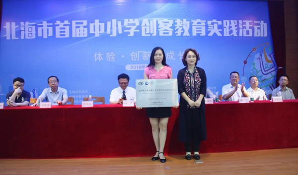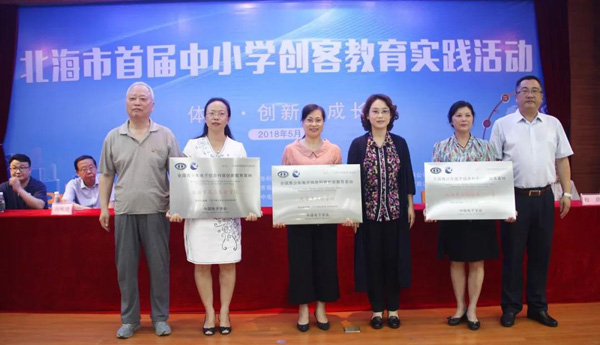 北海市科技局、北海市教育局、中國電子學(xué)會、中國電子北海產(chǎn)業(yè)園主辦的2018年北海市科技活動周暨首屆中小學(xué)創(chuàng)客教育實踐活動于5月21日開幕,北海市副市長黃江出席開幕式并宣布教育實踐活動啟動。