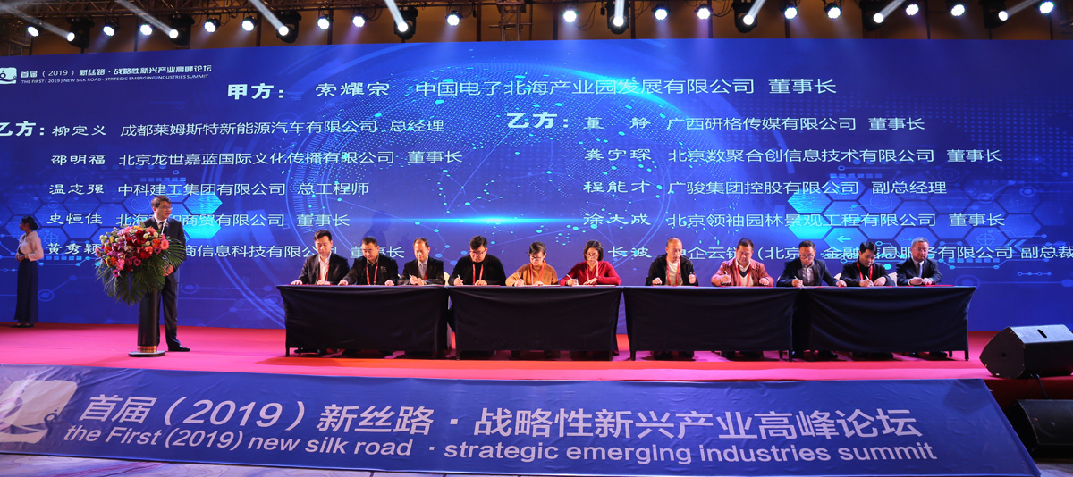2019年1月10日,以“創(chuàng)新引領(lǐng)戰(zhàn)略性新興產(chǎn)業(yè)”為主題的首屆(2019)新絲路·戰(zhàn)略性新興產(chǎn)業(yè)高峰論壇在北海舉行。外貿(mào)部原副部長周可仁、市長蔡錦軍、中電北海產(chǎn)業(yè)園公司董事長索耀宗出席論壇并致辭。有關(guān)國家部委領(lǐng)導(dǎo)、院士專家、行業(yè)組織的代表,新一代信息技術(shù)、智能制造、大健康、影視文化等國內(nèi)外企業(yè)家以及金融投資機構(gòu)負(fù)責(zé)人、媒體機構(gòu)代表、科研院所代表500多人參加了此次盛會。